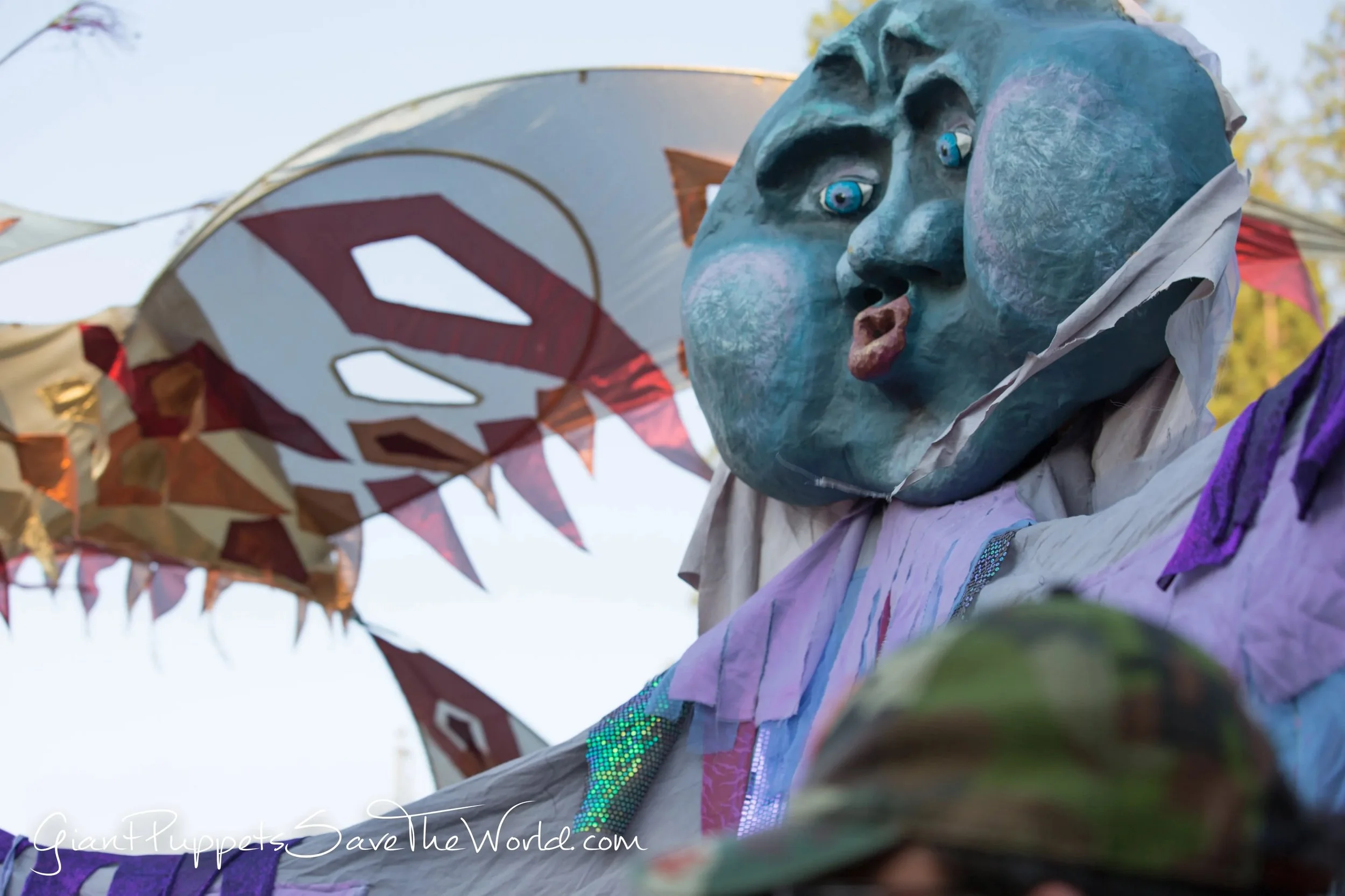 Wind is made entirely from recycled and repurposed materials, using non-toxic, accessible methods rooted in the Bread and Puppet tradition of radical, low-cost, community-built art: